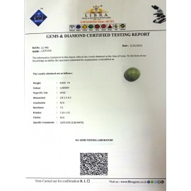 DATE: 11-4-2025REF.NO: LC 1248NAME: CATS EYEWEIGHT: 4.80 CTSCOLOUR: GREENTYPE OF/CUT: OVALDIMENSION: 1.1-9.1-6.7/CONCLUSION: N/AHARDNESS: 7.5R.INDEX: 1.54-1.55CLARITY: N/ASPECIFIC COMMENTS: CATS EYE {..