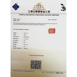 REPORT.NO.-LRS 25CLARITY.-N/ACOLOUR.-PINKSHAPE/CUT.-OVALWT.-3.24 CTSDIMENSION.-9-1.7-1.5-7.R.INDEX.-1.76-1.78HARDNESS.-9.0COMMENT.-RUBY { S }..