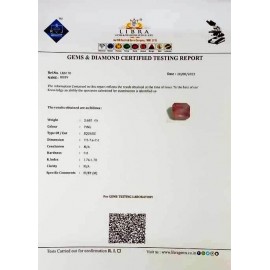 REPORT NO . LR 121CLARITY . N/ACOLOUR . PINKSHAPE / CUT . OVALWT . 4.26 CTSDIMENSION . 1-4.8-3.4-2.R . INDEX . 1.76-1.78HARDNESS . 9.0COMMENT . RUBY..