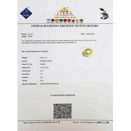 REPORT NO . LP 238CLARITY . N/ACOLOUR . SHINING WHITESHAPE / CUT . ROUNDWT . 8.09 CTSDIMENSION . 1-5.1-5.8-4.R . INDEX . N/AHARDNESS . 3.0COMMENT . PEARL..