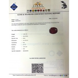 REPORT.NO.-LH 221CLARITY.-N/ACOLOUR.-COCA COLASHAPE/CUT.-OVALWT.-6.60 CTSDIMENSION.-2.6-1.4-5.2R.INDEX.-1.92-2.02HARDNESS.-6.5-7.5COMMENT.-HESSONITE..