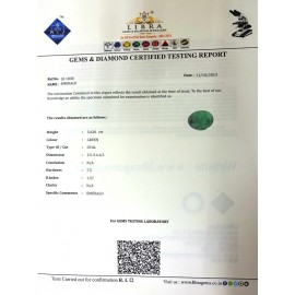 REPORT.NO.-LE 695CLARITY.-N/ACOLOUR.-GREENSHAPE/CUT.-OVALWT.-5.77 CTSDIMENSION.-2-6.9-7.6-5.R.INDEX.-1.57HARDNESS.-7.5COMMENT.-EMERALD..