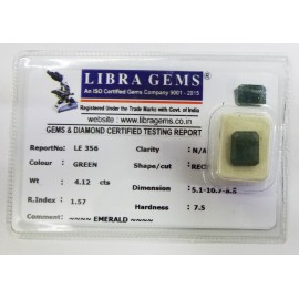 REPORT.NO.LE 356CLARITY.N/ACOLOUR.GREENSHAPE/CUT.RECTANGLEWT.4.12 CTSDIMENSION. 5-1.10-7.8-5.R.INDEX.1.57HARDNESS.7.5COMMENT.EMERALD..