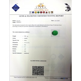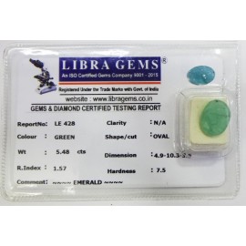 REPORT.NO.LE 428CLARITY.N/ACOLOUR.GREENSHAPE/CUT.OVALWT.5.48 CTSDIMENSION. 4-9.10-3.3-5.R.INDEX.1.57HARDNESS.7.5COMMENT.EMERALD..