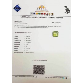 DATE:23-8-2023REF.NO:LY 784NAME:YELLOW SAPPHIREWEIGHT:4.94 CTSCOLOUR:YELLOWTYPE OF/CUT:RECTANGLEDIMENSION:9.1-8.9-4.9CONCLUSION:N/AHARDNESS:9.0R.INDEX:1.76-1.78CLARITY:N/ASPECIFIC COMMENTS:Y..