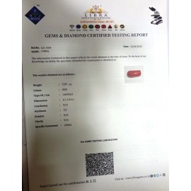 REPORT.NO.LCI 752CLARITY.N/ACOLOUR.REDSHAPE/CUT.CAPSULEWT.5.92 CTSDIMENSION.9.1-6.4-5.3R.INDEX.N/AHARDNESS.3.5COMMENT.CORAL ..