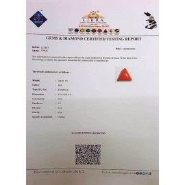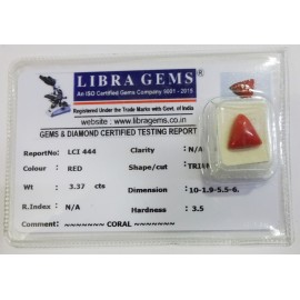 REPORT.NO.LCI 444CLARITY.N/ACOLOUR.REDSHAPE/CUT.TRIANGLEWT.3.37 CTSDIMENSION.3.37 CTSR.INDEX.N/AHARDNESS.3.5COMMENT.CORAL..