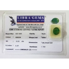 REPORT.NO.-LEJ 163CLARITY.-N/ACOLOUR.-GREENSHAPE/CUT.-OVALWT.-3.22 CTSDIMENSION.10.3-8.4-5.9-R.INDEX.-1.57HARDNESS.-7.5COMMENT.-EMERALD {J}..