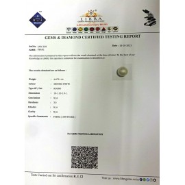 REPORT.NO.LPSC 101CLARITY.N/ACOLOUR.SHINING WHITESHAPE/CUT.ROUND WT.6.59 CTSDIMENSION.10.1-9.8-9.8R.INDEX.N/AHARDNESS.3.0COMMENT.PEARL {SOUTH SEA}..
