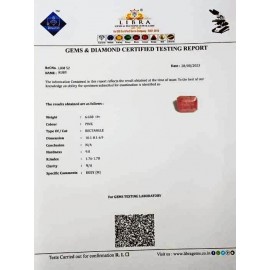 DATE:28-8-2023REF.NO:LRM 52NAME:RUBYWEIGHT:6.63 CTSCOLOUR:PINKTYPE OF/CUT:RECTANGLEDIMENSION:10-1.8-1.6-9.CONCLUSION:N/AHARDNESS:9.0R.INDEX:1.76-1.78CLARITY:N/ASPECIFIC COMMENTS:RUBY { M }..