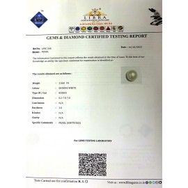 REPORT.NO.LP 1137CLARITY.N/A COLOUR.SHINING WHITE SHAPE/CUT.ROUND WT.5.52 CTS DIMENSION.10.4-10.4-6.5R.INDEX.N/AHARDNESS.3.0COMMENT.PEARL ..