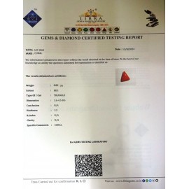 REPORT.NO.LCI 590CLARITY.N/ACOLOUR.RED SHAPE/CUT.TRIANGLE WT.3.71 CTSDIMENSION.1.7-10.8-5.7R.INDEX.N/AHARDNESS.3.5COMMENT.CORAL..