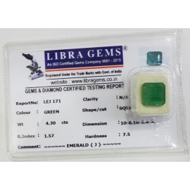REPORT.NO.LEJ 171CLARITY.N/ACOLOUR.GREENSHAPE/CUT.SQUARE WT.4.30 CTSDIMENSION.10.6-10.5-4.2R.INDEX.1.57HARDNESS.7.5COMMENT.EMERALD {J}..