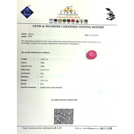 DATE:6-12-2023REF.NO:LRB 52NAME:RUBYWEIGHT:2.37 CTSCOLOUR:PINKTYPE OF/CUT:OVALDIMENSION:9.4-7.8-3.7CONCLUSION:N/AHARDNESS:9.0R.INDEX:1.76-1.78CLARITY:N/ASPECIFIC COMMENTS:BURMA RUBY {MAYANMA..