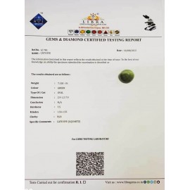 REPORT.NO.-LC 325CLARITY.-N/ACOLOUR.-L . GREENSHAPE/CUT.-ROUNDWT.-7.32 CTSDIMENSION.-2-2.1-7.7-5.R.INDEX.-1.54-1.55HARDNESS.-7.5COMMENT.-CATS EYE { S . QUARTZ }..