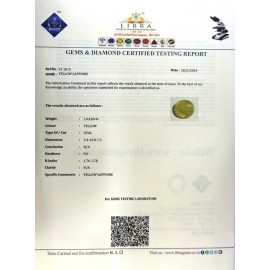 REPORT NO . LY 179CLARITY . N/ACOLOUR . YELLOWSHAPE / CUT . OVALWT . 3.37 CTSDIMENSION . 8-2.10-2.4-1.R . INDEX . 1.76-1.78HARDNESS . 9.0COMMENT . YELLOW SAPPHIRE..
