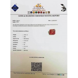 REPORT NO . LR 3CLARITY . N/ACOLOUR . PINKSHAPE / CUT . OVALWT . 4.73 CTSDIMENSION . 2-1.8-2.5-1.R . INDEX . 1.76-1.78HARDNESS . 9.0COMMENT . RUBY..