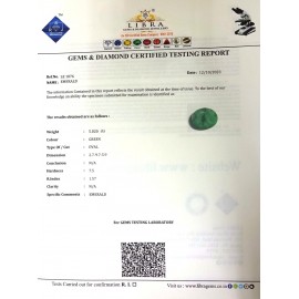 REPORT NO . LEJ 114CLARITY . N/ACOLOUR . GREENSHAPE / CUT . OVALWT . 3.02 CTSDIMENSION . 10-2.8-2.6-2.R . INDEX . 1.57HARDNESS . 7.5COMMENT . EMERALD { J }..