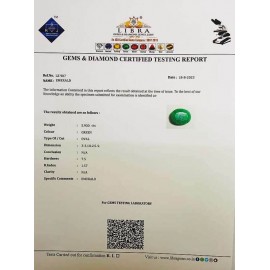 REPORT.NO.-LE 488CLARITY.-N/ACOLOUR.-GREENSHAPE/CUT.-OVALWT.-5.37 CTSDIMENSION.-4-2.10-4.4-9.R.INDEX.-1.57HARDNESS.-7.5COMMENT.-EMERALD..