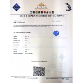 REPORT.NO.LN 851CLARITY.N/ACOLOUR.BLUESHAPE/CUT.OVALWT.10.35 CTSDIMENSION.1.5-10.6-8.2R.INDEX.1.76-1.78HARDNESS.9.0COMMENT.BLUE SAPPHIRE..