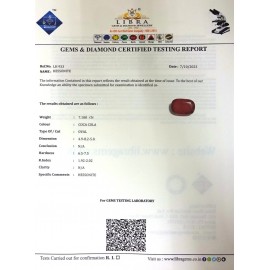 REPORT NO . LH 101CLARITY . N/ACOLOUR . COCA COLASHAPE / CUT . OVALWT . 3.96 CTSDIMENSION . 1-7.8-2.4-1.R . INDEX . 1.92-2.02HARDNESS . 6.5-7.5COMMENT . HESSONITE..