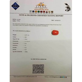 REPORT.NO.LCI 556CLARITY.N/ACOLOUR.REDSHAPE/CUT.CAPSULEWT.6.66 CTS DIMENSION.7.5-7.1-6.4R.INDEX.N/AHARDNESS.3.5COMMENT.CORAL ..
