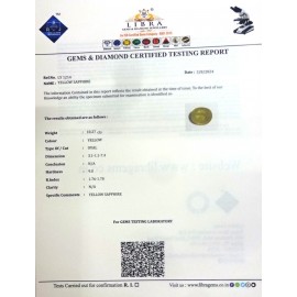 REPORT NO . LYA 16CLARITY . N/ACOLOUR . YELLOWSHAPE / CUT . OVALWT . 4.57 CTSDIMENSION . 3-2.10-1.3-1.R . INDEX . 1.76-1.78HARDNESS . 9.0COMMENT . YELLOW SAPPHIRE..