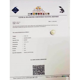 REPORT NO . LPS211CLARITY . N/ACOLOUR . SHINING WHITESHAPE / CUT . ROUNDWT . 4.48 CTSDIMENSION . 8-5.8-5.8-4.R . INDEX . N/AHARDNESS . 3.0COMMENT . C / WATER PEARL { SOSI }..