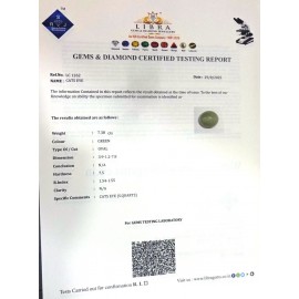 REPORT.NO.-LC 320CLARITY.-N/ACOLOUR.-GREENSHAPE/CUT.-OVALWT.-8.12 CTSDIMENSION.-3-6.10-5.8-1.R.INDEX.-1.54-1.55HARDNESS.-7.5COMMENT.-CATS EYE { S . QUARTZ }..