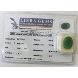 REPORT.NO.LEJ 261CLARITY.N/ACOLOUR.GREENSHAPE/CUT.OVALWT.6.47 CTSDIMENSION.4.4-10.6-5.7R.INDEX.1.57HARDNESS.7.5COMMENT.EMERALD {J}..