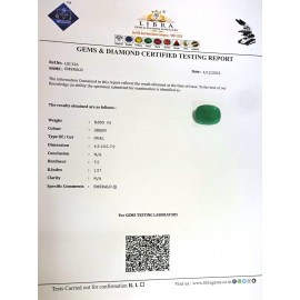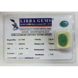 REPORT.NO.LE 346CLARITY.N/ACOLOUR.GREENSHAPE/CUT.OVALWT.6.79 CTSDIMENSION. 5-8.10-6.4-5.R.INDEX.1.57HARDNESS.7.5COMMENT.EMERALD..