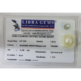 REPORT NO . LP 154CLARITY . N/ACOLOUR . SHINING WHITESHAPE / CUT . ROUNDWT . 3.78 CTSDIMENSION . 8-9.8-9.5-9.R . INDEX . N/AHARDNESS . 3.0COMMENT . PEARL..