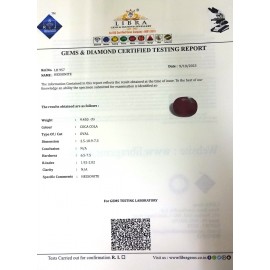 DATE: 15-4-2025REF.NO: LHS 461NAME: HESSONITEWEIGHT: 2.66 CTSCOLOUR: COCA COLATYPE OF/CUT: OVALDIMENSION: 9.6-8.1-4.1/CONCLUSION: N/AHARDNESS: 6.5-7.5R.INDEX: 1.92-2.02CLARITY: N/ASPECIFIC COMMENTS: H..