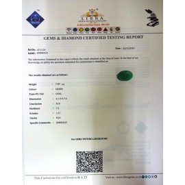REPORT.NO.- LE 179CLARITY.- N/ACOLOUR.- GREENSHAPE/CUT.- OVALWT.- 3.63 CTSDIMENSION.- 1-8.9-7.4-6.R.INDEX.- 1.57HARDNESS.- 7.5COMMENT.- EMERALD..