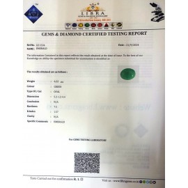 REPORT.NO.-LE 729CLARITY.-N/ACOLOUR.-GREENSHAPE/CUT.-OVALWT.-4.14 CTSDIMENSION.-2-5.9-2.4-4.R.INDEX.-1.57HARDNESS.-7.5COMMENT.-EMERALD..