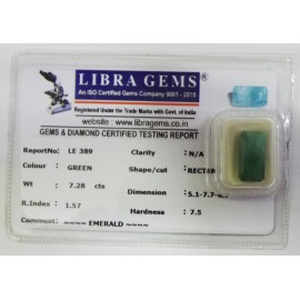 REPORT.NO.LE 389CLARITY.N/ACOLOUR.GREENSHAPE/CUT.ECTANGLEWT.7.28 CTSDIMENSION. 5-1.7-7.6-7.R.INDEX.1.57HARDNESS.7.5COMMENT.EMERALD..