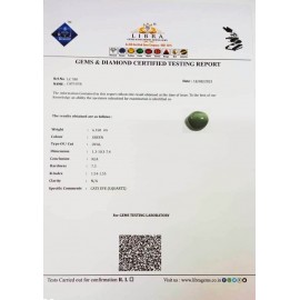 REPORT.NO.LC 302CLARITY.N/ACOLOUR.GREENSHAPE/CUT.OVALWT.4.49 CTSDIMENSION.2.7-8.7-6.1R.INDEX.1.54-1.55HARDNESS.7.5COMMENT.CATS EYE {S.QUARTZ}..