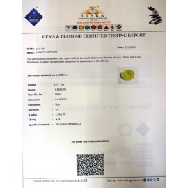 REPORT NO . LY 261CLARITY . N/ACOLOUR . YELLOWSHAPE / CUT . OVALWT . 4.96 CTSDIMENSION . 9-3.7-5.6-5.R . INDEX . 1.76-1.78HARDNESS . 9.0COMMENT . YELLOW SAPPHIRE..