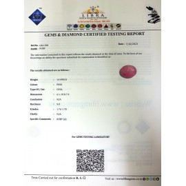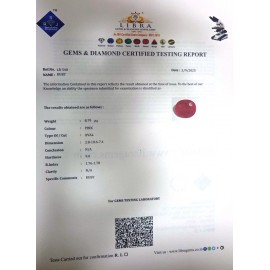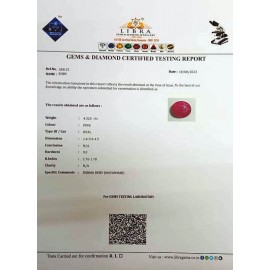 DATE:18-8-2023REF.NO:LRB 25NAME:RUBYWEIGHT:4.32 CTSCOLOUR:PINKTYPE OF/CUT:OVALDIMENSION:1-4.9-4.4-5.CONCLUSION:N/AHARDNESS:9.0R.INDEX:1.76-1.78CLARITY:N/ASPECIFIC COMMENTS:BURMA RUBY { MAYAN..