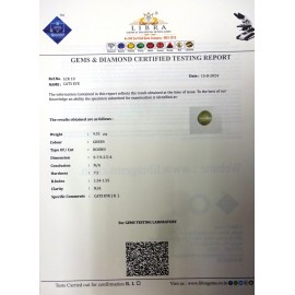 REPORT.NO.LC 435CLARITY.N/ACOLOUR.L.GREENSHAPE/CUT.OVALWT.12.20 CTSDIMENSION.4.1-2.1-10.1R.INDEX.1.54-1.55HARDNESS.7.5COMMENT.CATS EYE {S.QUARTZ}..