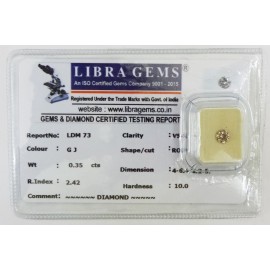 REPORT NO . LDM34CLARITY . VS-1COLOUR . ISHAPE / CUT . ROUNDWT . 0.28 CTSDIMENSION . 4-2.2-5.4-2.R . INDEX . 2.42HARDNESS . 10.0COMMENT . DIAMOND..