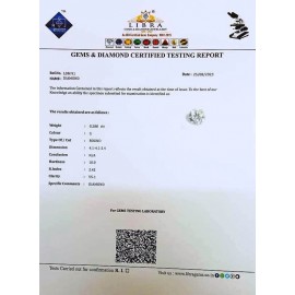 DATE:20-7-2024REF.NO:LDM 129NAME:DIAMONDWEIGHT:0.28 CTSCOLOUR:G-JTYPE OF/CUT:ROUNDDIMENSION:4-1.4-1.2-5.CONCLUSION:N/AHARDNESS:10.0R.INDEX:2.42CLARITY:SI1SPECIFIC COMMENTS:DIAMOND..