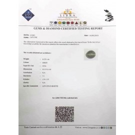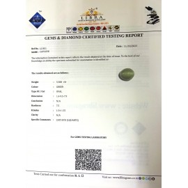 REPORT NO . LC 29CLARITY . N/ACOLOUR . L . GREENSHAPE / CUT . ROUNDWT . 5.12 CTSDIMENSION . 1-3.10-2.6-3.R . INDEX . 1.54-1.55HARDNESS . 7.5COMMENT . CATS EYE { S . SQUARTZ }..