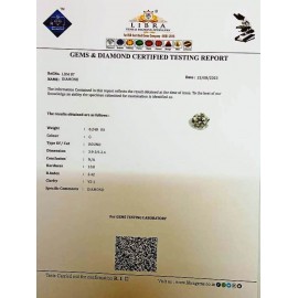 REPORT NO . LDM35CLARITY . SI-1COLOUR . G-JSHAPE / CUT . ROUNDWT . 0.28 CTSDIMENSION . 4-2.2-5.4-2.R . INDEX . 2.42HARDNESS . 10.0COMMENT . DIAMOND..