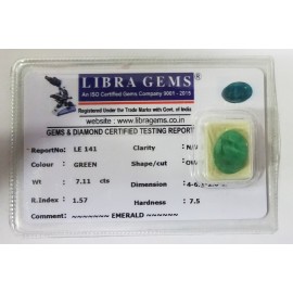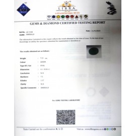 REPORT NO . LE 86CLARITY . N/ACOLOUR . GREENSHAPE / CUT . OVALWT . 2.85 CTSDIMENSION . 1-7.9-1.3-9.R . INDEX . 1.57HARDNESS . 7.5COMMENT . EMERALD..