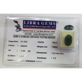 REPORT.NO.LE 838CLARITY.N/ACOLOUR.GREENSHAPE/CUT.OVALWT.3.61 CTSDIMENSION.2.4-8.9-4.1R.INDEX.1.57HARDNESS.7.5COMMENT.EMERALD ..