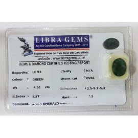 REPORT.NO.LE 561CLARITY.N/ACOLOUR.GREENSHAPE/CUT.OVALWT.5.08 CTSDIMENSION.3.2-10.4-5.6R.INDEX.1.57HARDNESS.7.5COMMENT.EMERALD ..